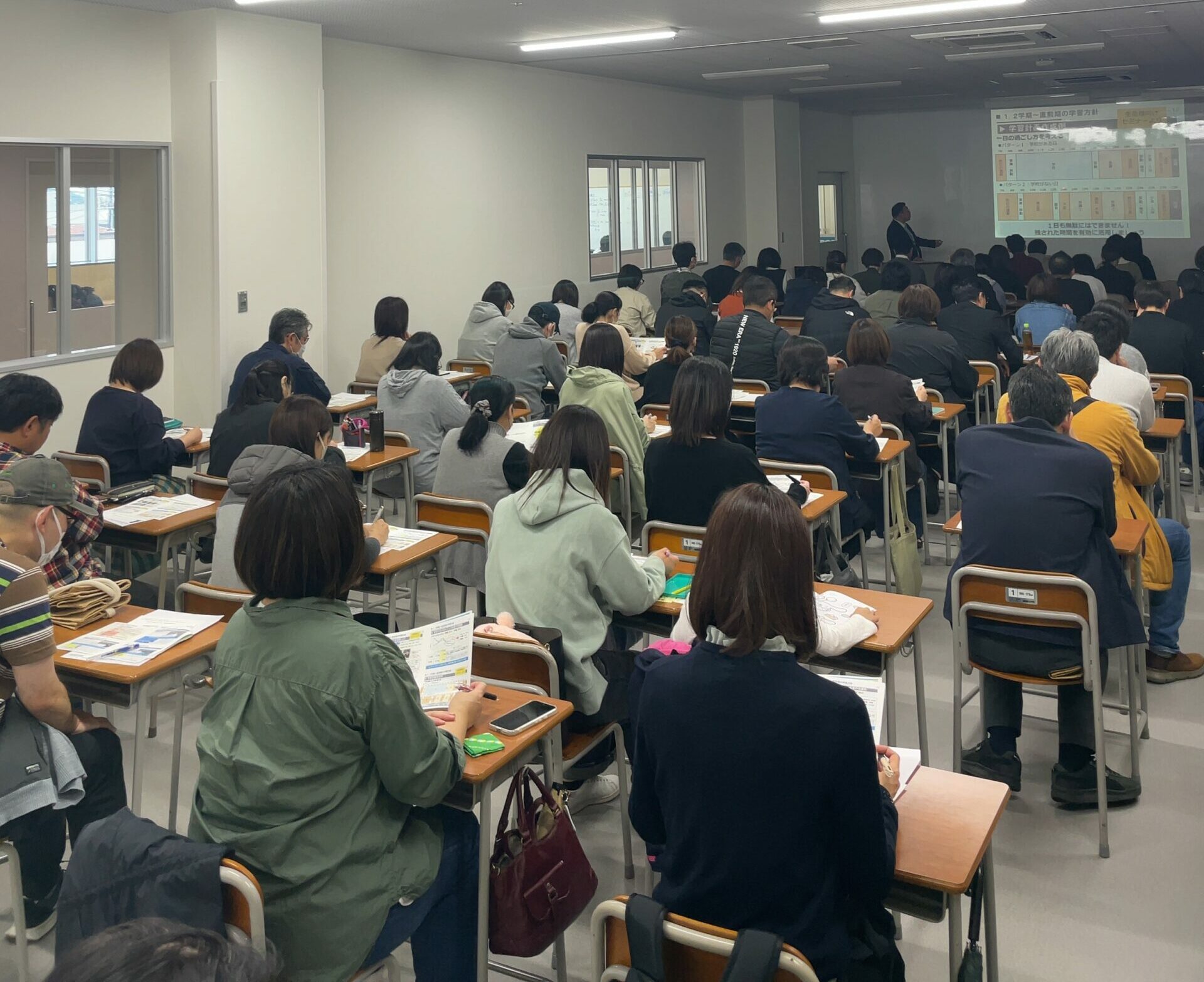 【クラス授業】広い教室なので、こんなに生徒が入ってもゆとりがあります。