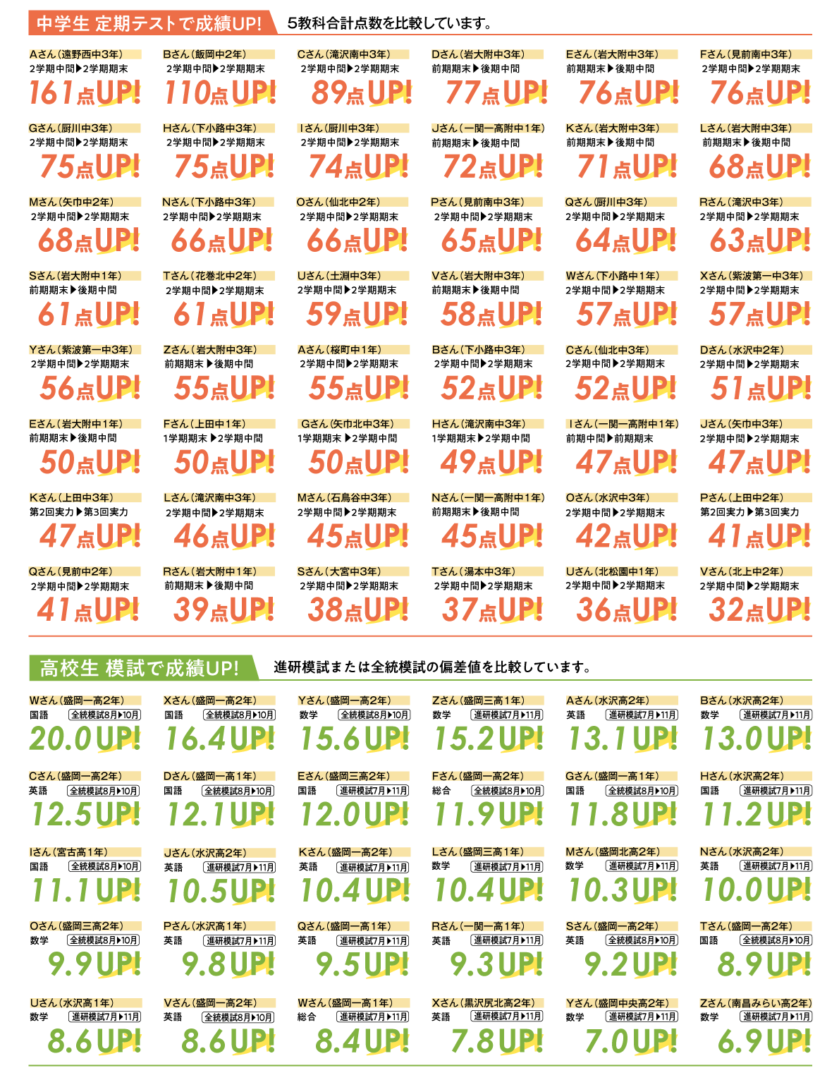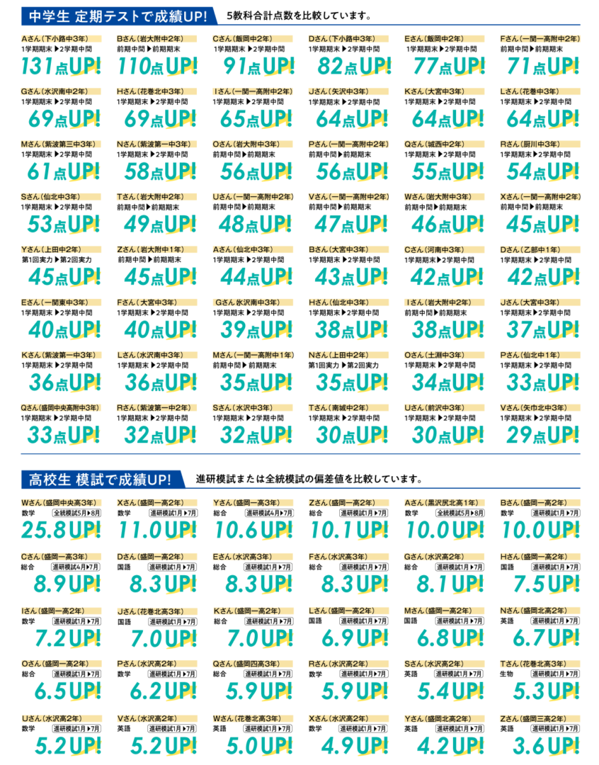 現在お通いいただいている、また過去にお通いいただいた生徒の皆さんより、成績アップの嬉しいご報告をいただいておりますのでご紹介いたします。